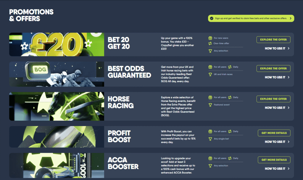 CopyBet offers a UK-compliant welcome bonus, usually in the form of a bet credits promotion rather than traditional matched betting.